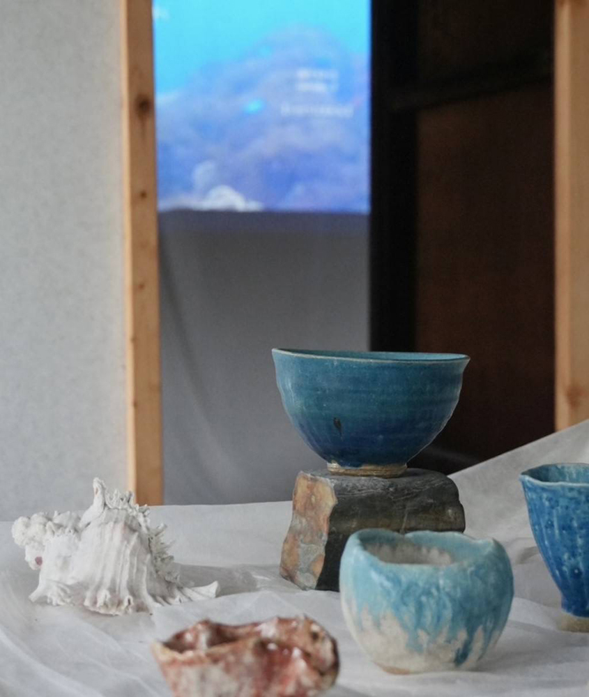 天草下島の海を撮影した映像と陶作品を上映展示中です。