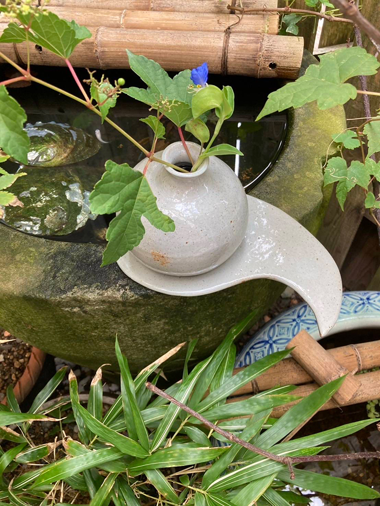 一輪挿しを撮ろうと構えたらメダカが映り込みました